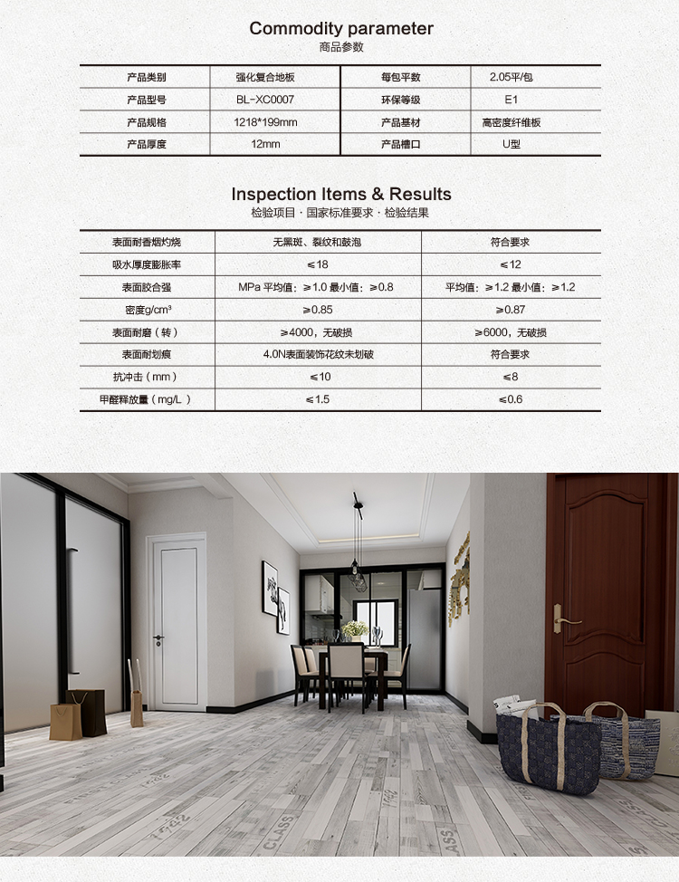 • 【雅柏麗】強(qiáng)化復(fù)合地板 環(huán)保防水耐磨 BL-XC0007
